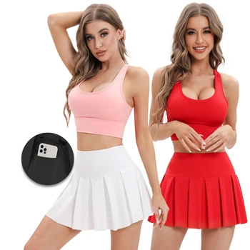 여성용 테니스 스커트 및 반바지, 배드민턴 플리츠 스커트, 운동 스포츠 브라, 탑 바텀 골프웨어, 레드 핑크 화이트 운동복, 여름