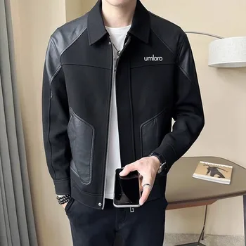 2024 남성용 PU 가죽 스플라이싱 코트, 방풍 캐주얼 재킷, 럭셔리 브랜드, 가을 골프웨어, 신상