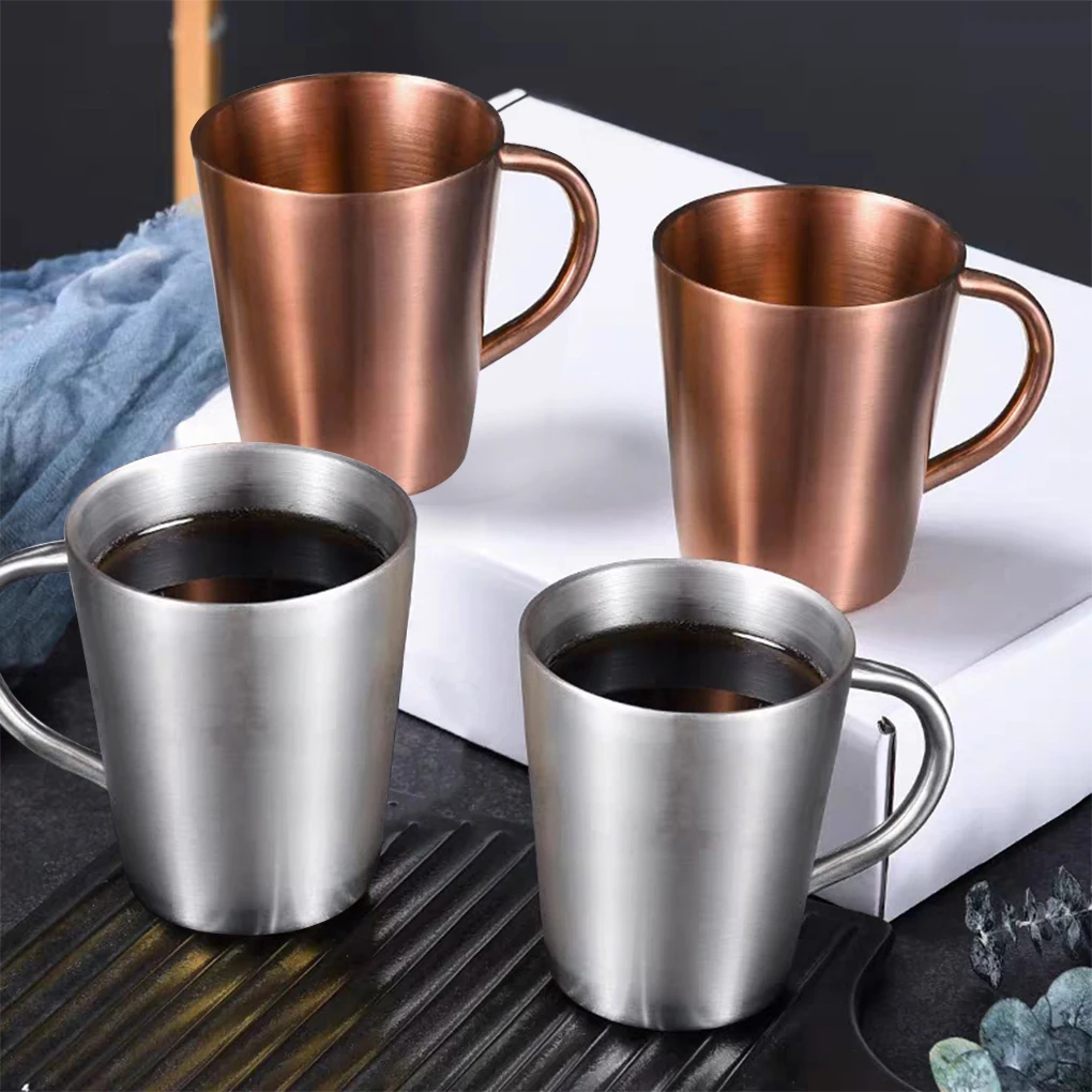 스테인레스 스틸 커피 머그잔, 더블 레이어 찻잔, 여행 음료 컵, 홈 오피스 바 용품, 로즈 골드