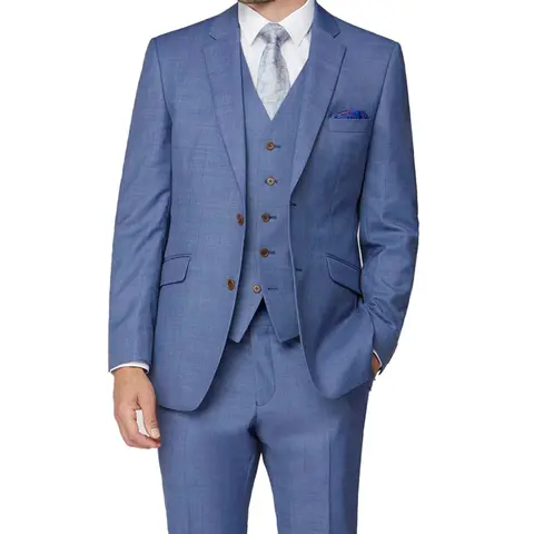 커스텀 제작 연청 샤크스킨 웨딩 세트, 세트 남성 정장, 하이 퀄리티 2024, 3 피스 의상 세트