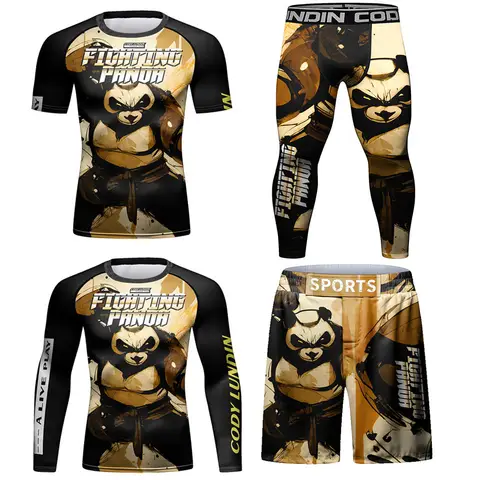 남자 MMA Rashguard Jiu Jitsu 유니폼 + 바지 훈련 복싱 티셔츠 세트 무에타이 반바지 Bjj 의류 러쉬 가드 Boxeo Sportsuit
