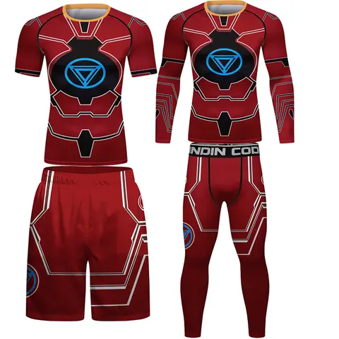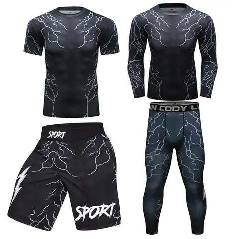새로운 압축 MMA 러쉬 가드 티셔츠 바지 세트 남성용 러쉬 가드 무에타이 반바지 러쉬 가드 스포츠웨어 체육관 Bjj Gi 복싱 유니폼